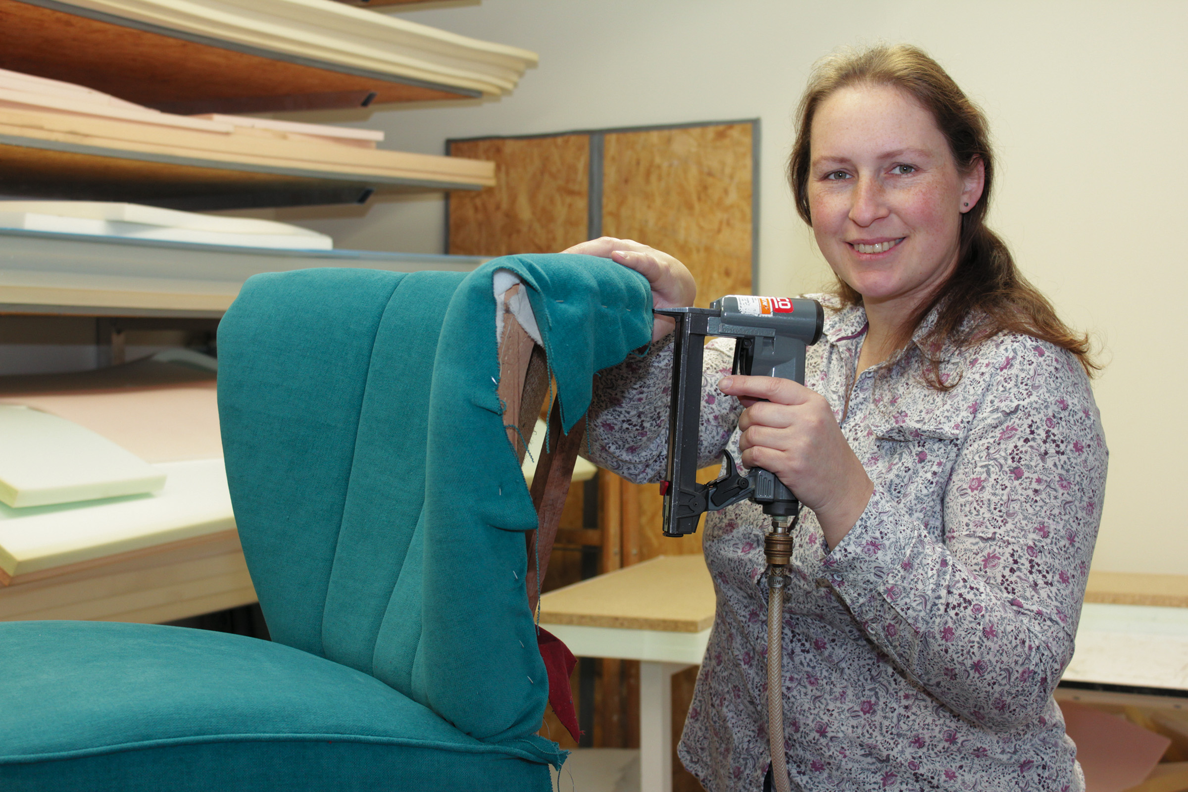 Der alte Ohrensessel, in dem schon die Großmutter ihrer Handarbeit nachging, das Küchensofa, auf dem der Vater sein Mittagsschläfchen hielt, ein gepolsterter Stuhl aus den 70ern, der jetzt modern ist – viele Menschen haben ein Lieblingspolstermöbelstück, von dem sie sich nicht trennen wollen, das aber dringend einer Restaurierung bedarf. Ingrid Schreiber von IS-Polsterungen hat sich ganz aufs Polstern spezialisiert. Ihre Arbeit beginnt, nach einer Terminvereinbarung, mit einer Analyse des „Patienten“ vor Ort beim Kunden. Dann wird gemeinsam ein passender Stoff ausgewählt und der Kostenaufwand besprochen. Wenn die gelernte Tapeziererin ans Werk geht, entfernt sie zunächst den alten Stoff, erneuert, wenn nötig, das „Innenleben“, repariert beschädigte Teile und tapeziert schließlich das Möbelstück neu. Viele der Nähte an einem Ohrensessel oder einem Sofa werden dabei von Hand gefertigt!